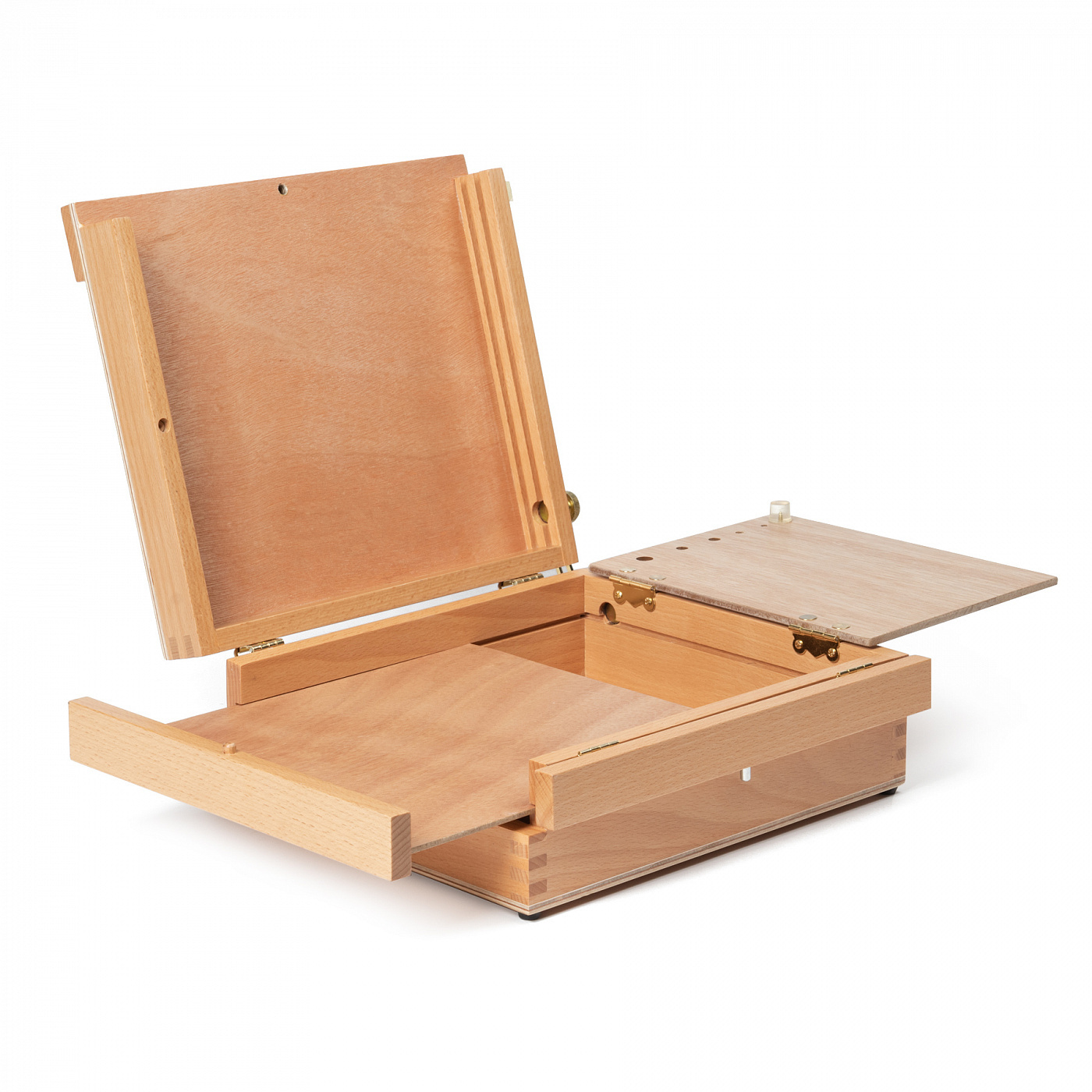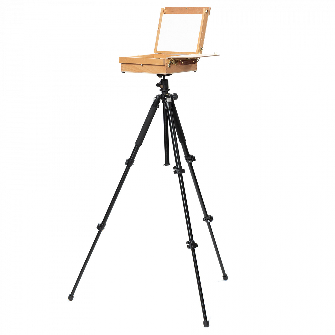 Этюдный ящик Pinax — это незаменимый помощник для художника. Основное отделение ящика поможет разместить краски, кисти и другие необходимые для работы материалы. Выдвижные и откидные полочки, держатели кистей, кассетница для этюдов, крепление для фотоштатива и мольберт для холстов на картоне 18х24 см. делают этюдник идеальным для работы как дома, так и на пленэре. Ящик выполнен из бука и оснащён ручкой для удобства переноски. Размер 28x23x11.5 см. Вес: 1,5 кг.