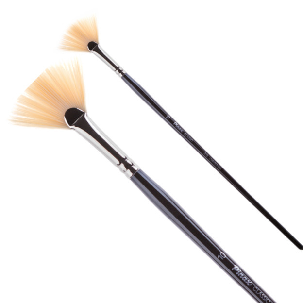 Кисть №10 веерная, длинная ручка, из синтетики, выпускаются хорошо зарекомендовавшей себя на рынке товаров для художников и творчества компанией "Pinax". Кисти «Пинакс» серии "Classic" отличного качества, прекрасно подходят для работы со всеми видами краски: акварельной, гуашевой, акриловой, темперной, алкидной, масляной, и т.д. Кисти "Pinax" из синтетики значительно дешевле натуральных, более устойчивы к истиранию, а также у них прекрасное соотношение цены и качества.