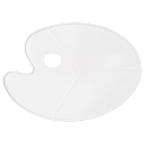 Пластиковая овальная палитра предназначена для живописных работ, используется для смешивания красок. Палитра разделена на 3 сектора и оснащена отверстием для большого пальца.