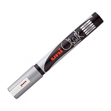 ЮНИ Меловой маркер, PWE-5M, пулевид., 2,5мм,серебряный